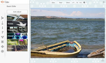 Zunächst lädt man das zu bearbeitende Bild in PicMonkey. Für die Bearbeitung steht ein umfangreicher Werkzeugkasten zur Verfügung. Mit den Grundwerkzeugen schneidet man das Bild zu, dreht es und passt Farben, Helligkeit, Kontrast und Schatten an.