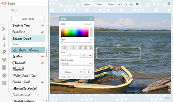 Mit Effekten verleiht man dem Foto eine neue Stimmung und setzt Akzente. In Portraits entfernt man Falten, macht Zähne weiß und entfernt rote Augen. Mit Overlay bringt man Herzchen, Pfeile, Symbole oder Sprechblasen in das Foto. Für Text im Bild steht in PicMonkey eine große Auswahl an Schrifttypen bereit.